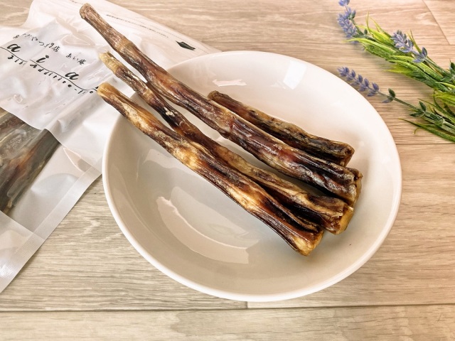 噛み応えのあるおやつに仕上げました。骨のまわりに薄っすらお肉が付いているので