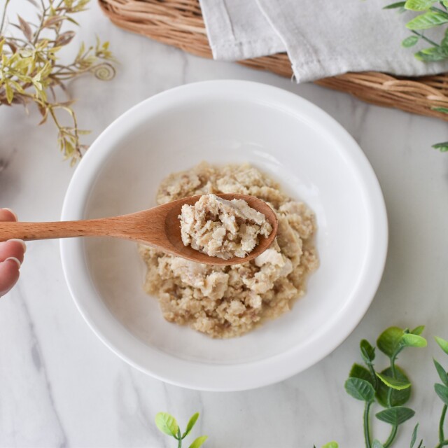 | 保存方法 | 開封前は直射日光・高温多湿の場所を避けて保存してください。 開封後はタッパーやお皿に移し変えて冷蔵庫保存で2日以内にお与えください。 |