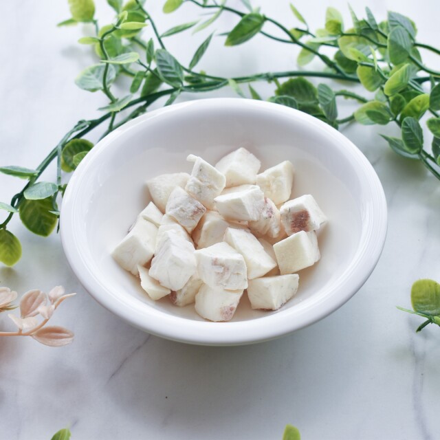 香川県水揚げの天然の真鯛を使用しフリーズドライにしました。「サクサク・ふわふわ」とした食感のおやつです。パピー~高齢犬まで幅広くお楽しみいただけます。