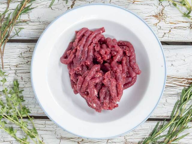 | 使用目安 | (~5kg):~125g (~10kg):~250g (~20kg):~500g (~30kg):~750g (~40kg):~1kg 上記は避妊・去勢手術済の健康な成犬の手作り食用の1日に必要な摂取量の目安です。 フードのトッピングでご使用の場合には、ドライフードをいつもの量より20%~30%減らし、減ったカロリー分を馬肉で補ってください。 |